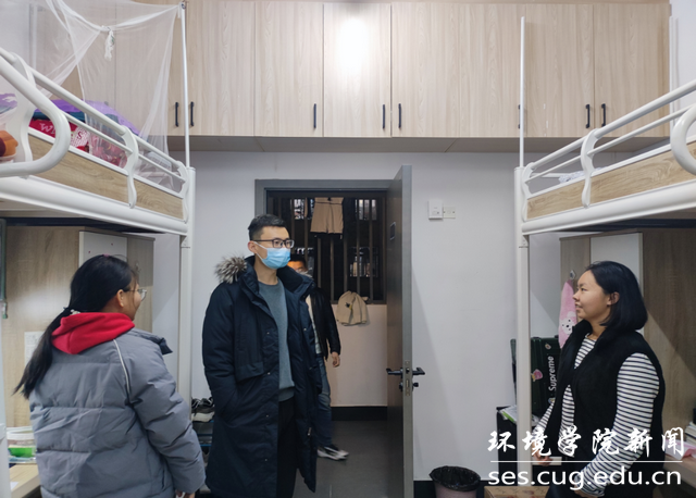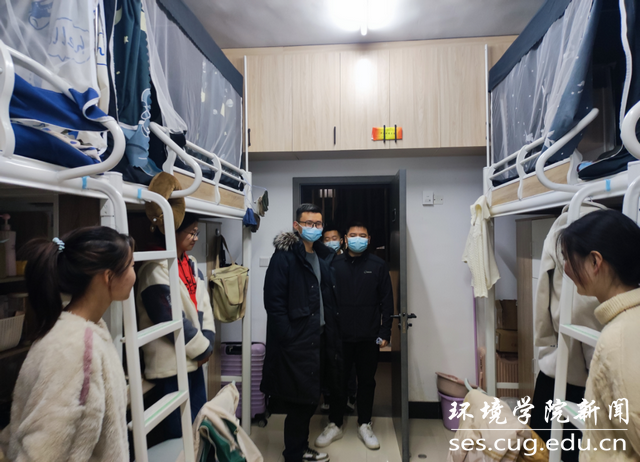 学院党委副书记王海锋、辅导员孟庆达一行走访南望山校区学生宿舍