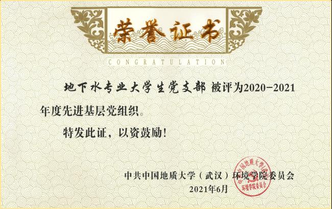 地下水专业大学生党支部被评为学院2020-2021年度先进基层党组织