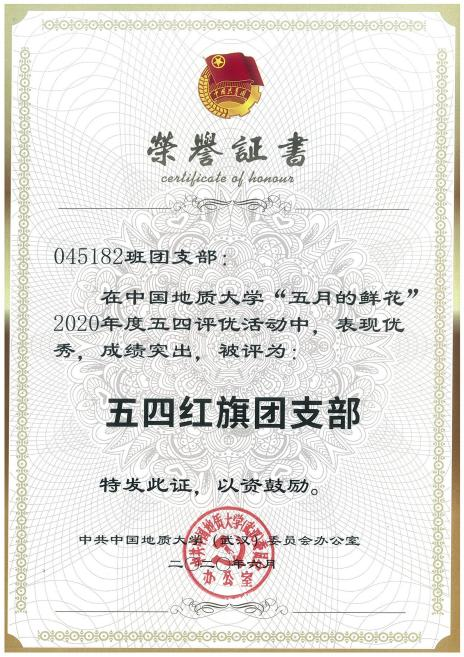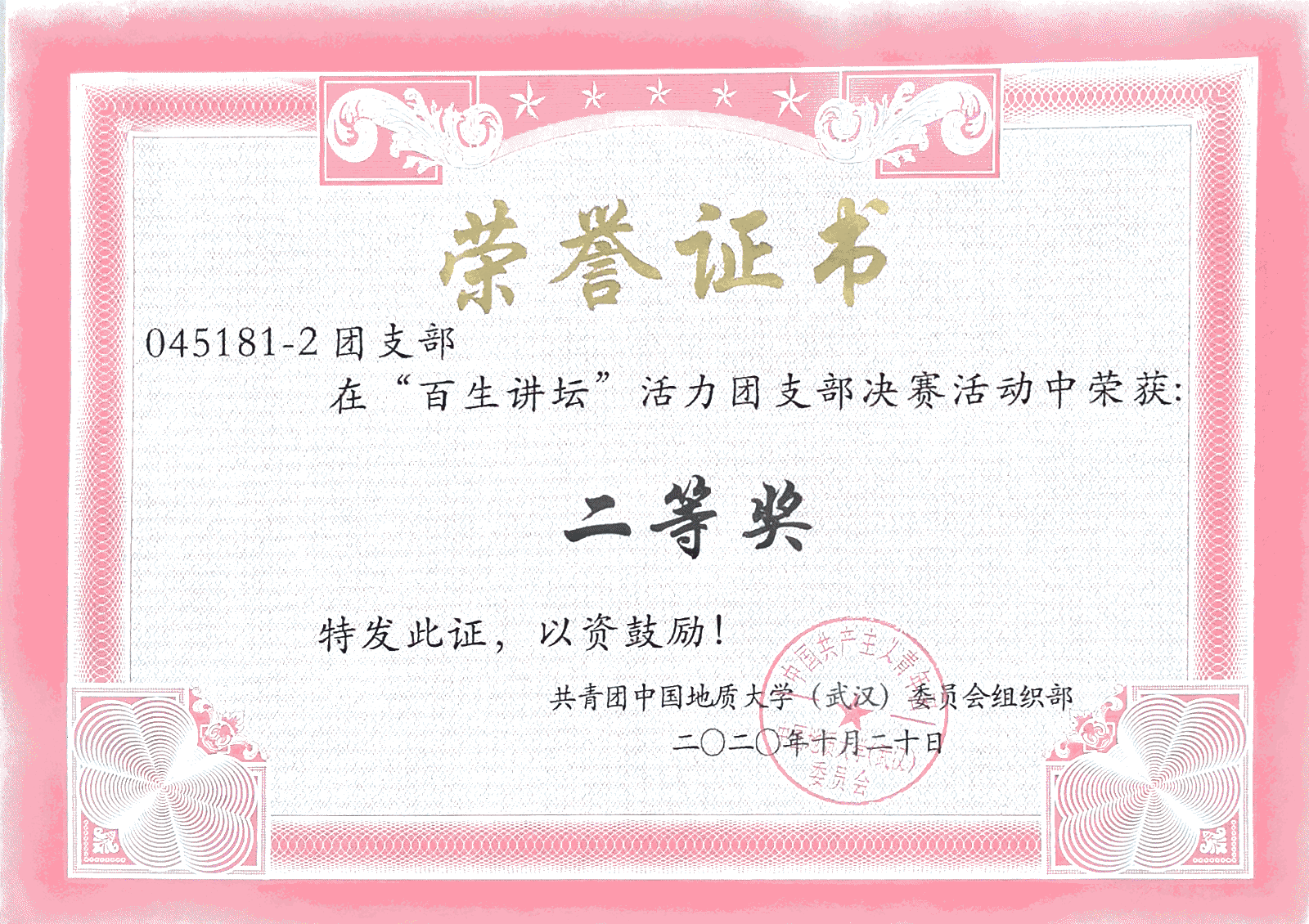 在班级同学的共同努力下,班级多次获得校级集体荣誉,2019年获得校级先进班集体、校级主题团日设计大赛一等奖,2020年、2021年连续两年分别获得校级“百生讲坛”活力团支部二等奖、校级五四红旗团支部、校级先进班集体标兵等荣誉称号。耀眼的成绩背后,是所有班级成员和中加人的奉献与传承,也是他们情谊的见证与褒奖。