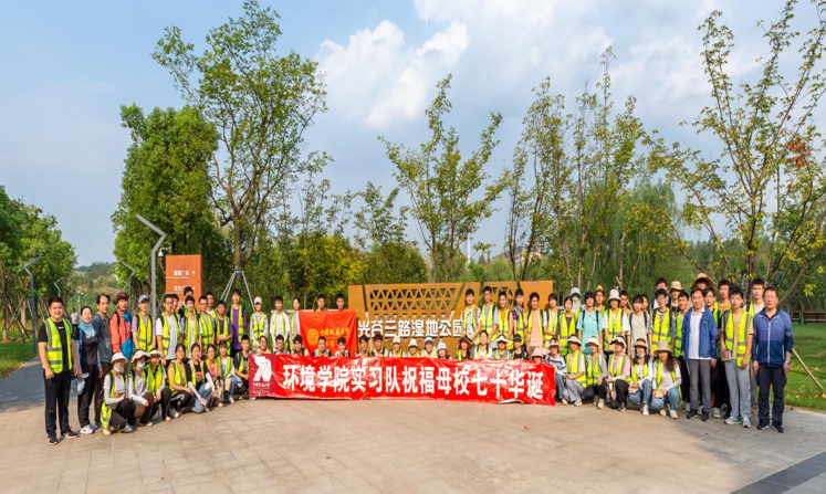 李素矿与04H214、04H215和04H216班实习师生在光谷三路湿地公园合影