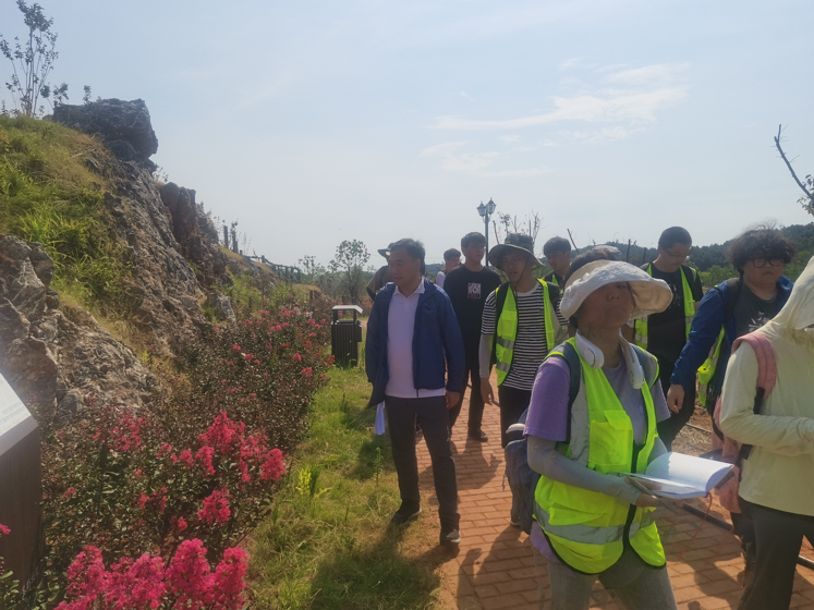 上午10点,李素矿一行同2021级环境科学与工程大类专业04H217班学生参加江夏矿山公园实习路线。他与同学们一起听取带班老师宁立波对土地复垦相关内容的讲解,了解江夏矿山公园如何开发成为一个旅游景区。他与实习学生展开亲切交谈,询问同学们的实习近况,认真倾听同学们的心得感悟。他表扬同学们在努力完成每日野外实习任务的同时,实地践行了“艰苦朴素,求真务实”的校训精神,彰显了新时代生态环保铁军的风采。他勉励同学们要重视野外实习实践,领会野外实习对专业的巩固和提高的重要性,要坚持理论与实践相统一,将书本上的理论知识运用于实践中,为生态文明建设和生态环境保护事业贡献一份力量。