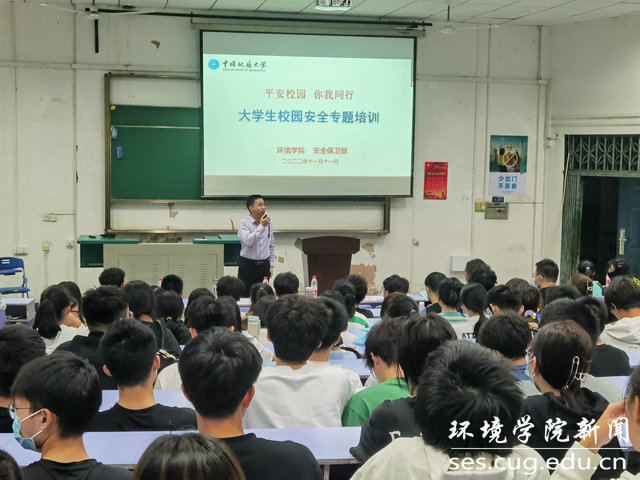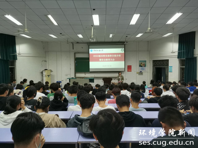 2022级本科生培养方案介绍暨安全教育大会在南望山校区教三楼207举行,安全保卫部副部长彭冠军,治安科魏景明老师,学院副院长柴波教授,辅导员李平及2022级全体本科生参加会议。