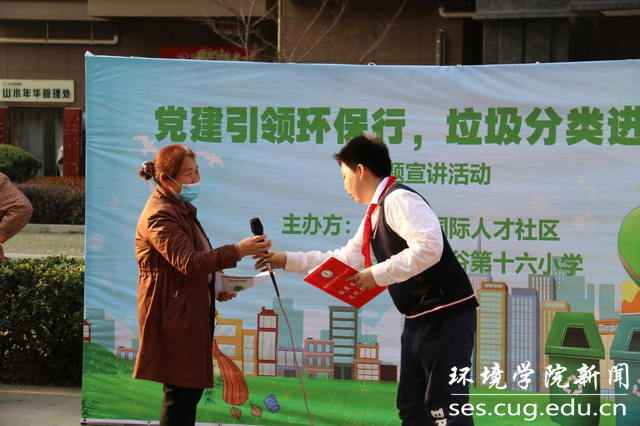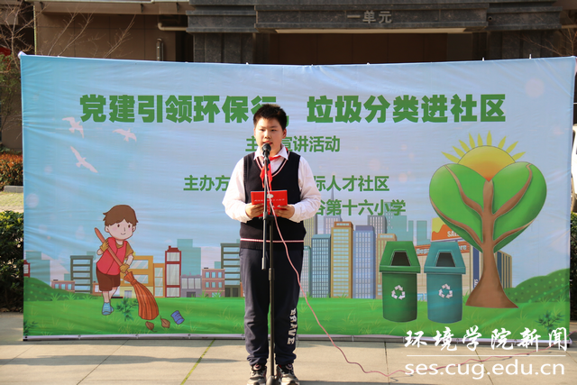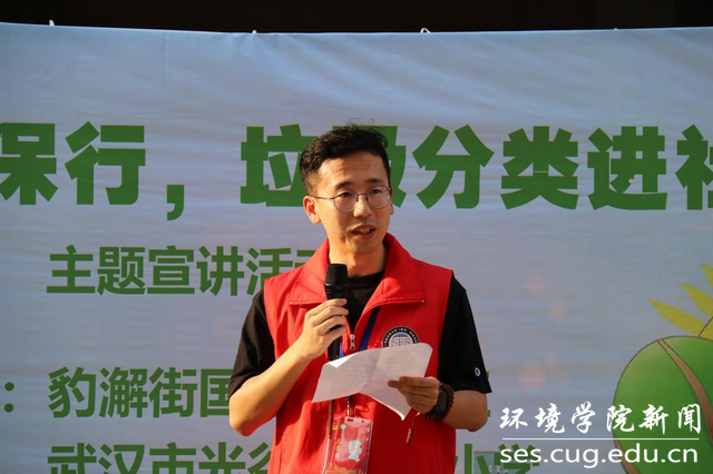 研究生志愿者刘源进行《垃圾分类与生态文明建设》宣讲