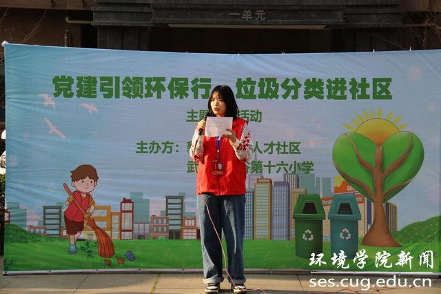 “张国旗班”志愿团研究生志愿者陆煜迪、刘丹丹、刘源分别以《何谓“低碳生活”》、《分类后的垃圾去了哪》及《垃圾分类与生态文明建设》为题进行总结宣讲,用生活中常见的环境问题为切入,向社区居民们详细地讲解了如何做好家庭垃圾分类、实行垃圾分类的意义等;而后循序渐进,倡议个人应将生态环境保护意识内化于心,与日常生活联系起来,引导群众正确投放各类生活垃圾,进一步增强了居民群众们的垃圾分类意识,使其能够更自发、自主地践行绿色低碳的生活方式。