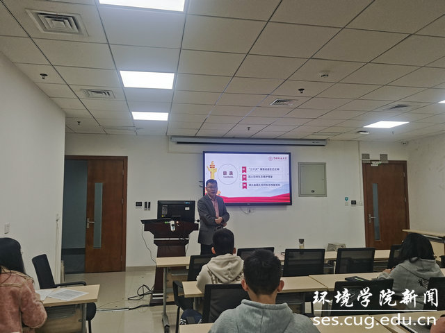 通讯员何骏昊、陈俊男  摄影刘晔  编辑耿婧)按照学校处级及以上党员领导干部、党支部书记讲党课制度,肉视频 党委制定印发了院领导联系指导学生支部方案。4月6日中午,肉视频 副院长柴波以“聚焦生态文明建设优化国土空间生态保护修复”为主题为地下水专业本科生党支部、2022级博士研究生党支部以及第28期发展对象培训班讲授专题党课。本次党课在环境楼347举行,党建辅导员陈俊男,学生党支部全体党员及培训班全体学员参与学习。