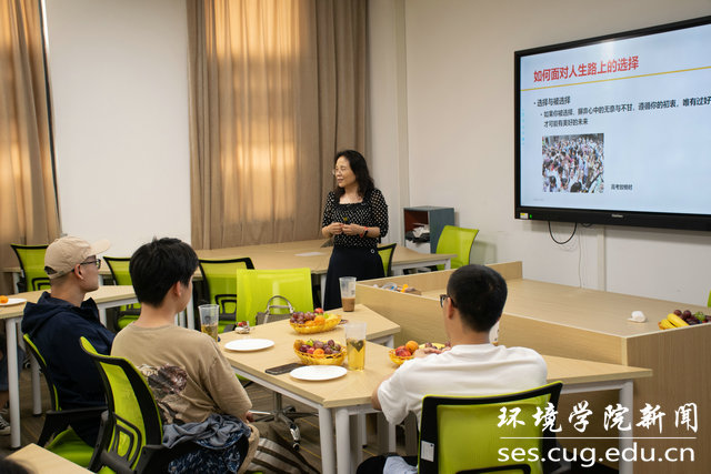 通讯员方芳、郑洋  摄影郑洋  编辑耿婧)为迎接六五环境日,引导同学们在投身建设人与自然和谐共生的现代化中坚定理想信念,提升业务水平,5月25日下午,肉视频 举办第二期“E师亦友”师生茶话会。“地质微生物教学科研导学团队”负责老师王红梅教授做客本期师生茶话会,讲述了自己从高考志愿到博士科研的宝贵经历,从人生选择、科研心态、人际关系等方面为同学们答疑解惑。