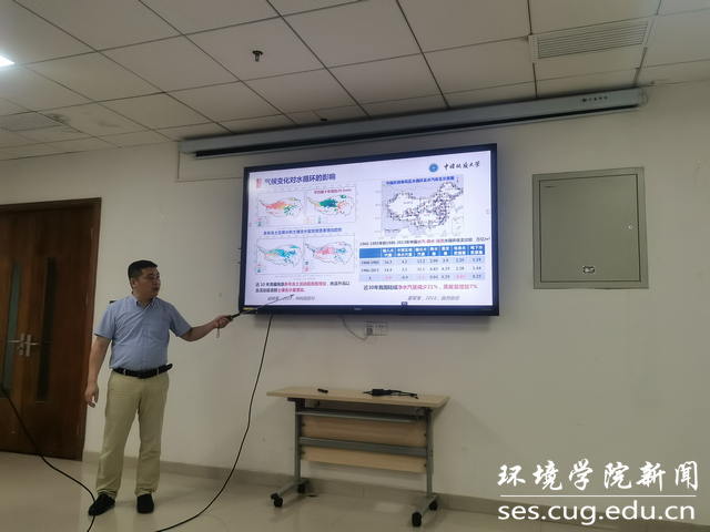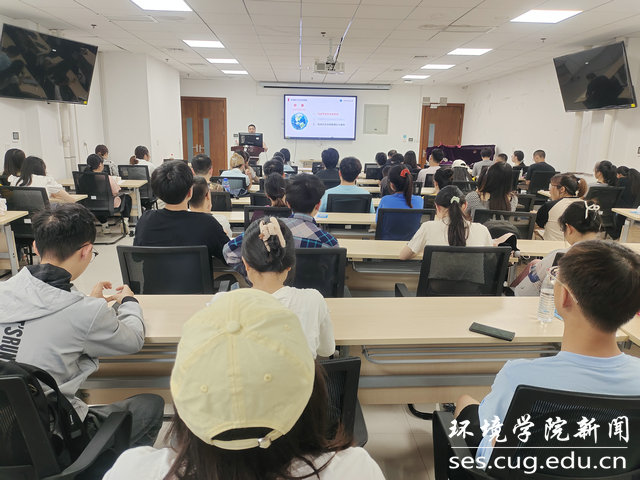 谢先军向大家介绍了山水林田湖草是生命共同体重要内容,重点介绍“水与生态文明建设”。他指出,水是山水林田湖草生命共同体中最关键最活跃的因子,水循环在地球表层系统中的关键作用显著,人类活动对水循环的影响巨大,我们要充分注重水循环与水安全问题。新时代环境学子更要勇担重要使命任务,在水循环与水安全领域贡献力量。