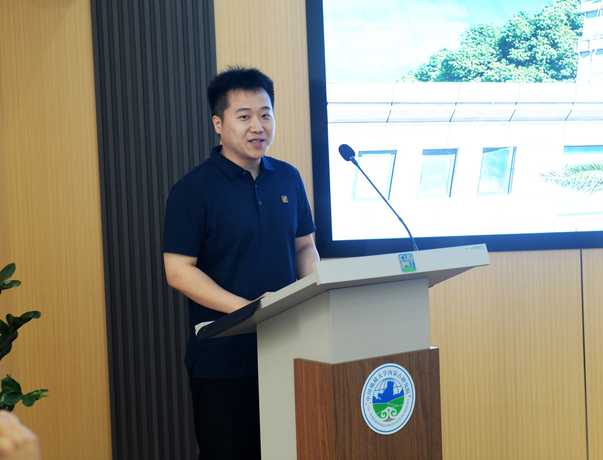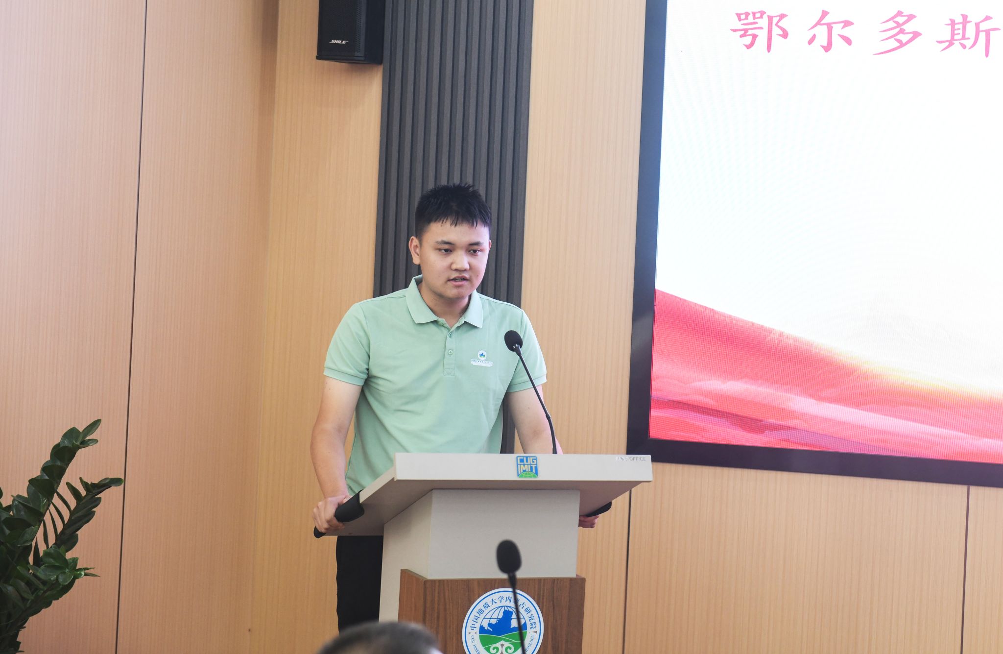 团委书记孟庆达汇报学院暑期社会实践工作体系和鄂尔多斯专项社会实践开展情况。