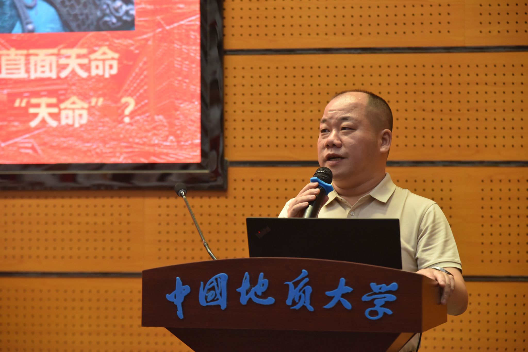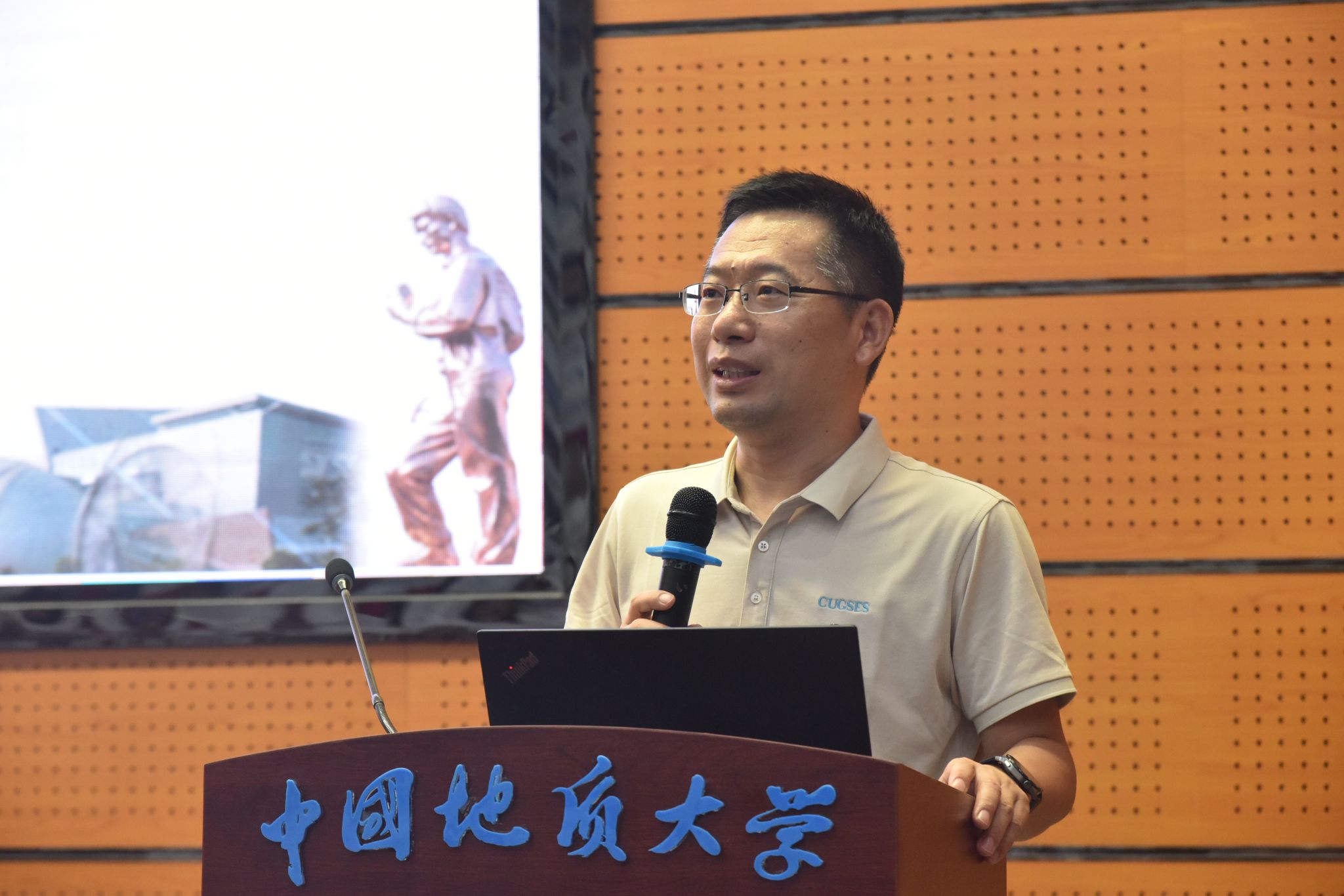 的历史沿革,教学科研机构设置、野外实习基地、国际交流合作、师资队伍、人才培养目标、专业设置、特色育人模式,优秀师生典型等方面对学院进行了全面的介绍。最后勉励同学们在大学四年中怀揣梦想,以“红专能优”为标,树立地大梦和环境梦;脚踏实地,以优秀校友的榜样精神为指导,尽显铁军本色,实现地质报国的远大目标;不负韶华,谱写崭新的青春篇章。