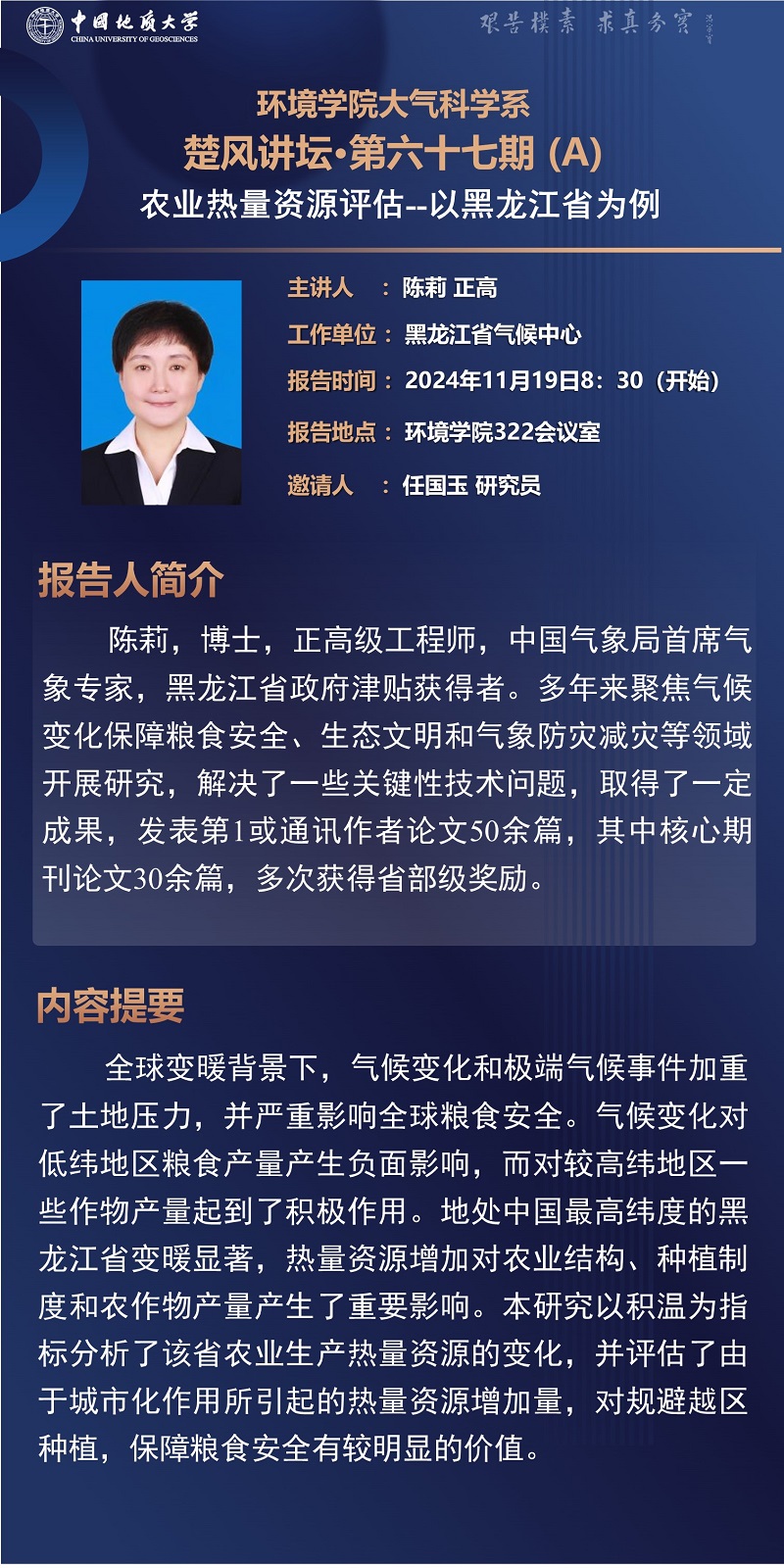 黑龙江省气候中心陈莉正高级工程师学术报告