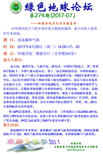 秦大河,地理学家,气候学家,研究员。中国科学院院士,第三世界科学院院士。中国气象局原局长,第十二届全国政协常委,中国科协副主席。1970年毕业于兰州大学地质地理系自然地理专业,1992年获理学博士学位。先后任中国科学院兰州冰川冻土研究所副所长、冰芯与寒区环境重点实验室主任,中国科学院兰州分院副院长,中国科学院资源环境科学与技术局局长。长期从事冰冻圈与全球变化研究,多次参加、主持南、北极、青藏高原和中国西部地区的科学考察和研究,取得了系列创新性成果。迄今发表论文300余篇,著作12部。研究成果被国内外同行广泛引用,获国家和省部委科技成果奖8项,其中中国科学院自然科学一等奖二项。2013年获国际沃尔沃环境奖。