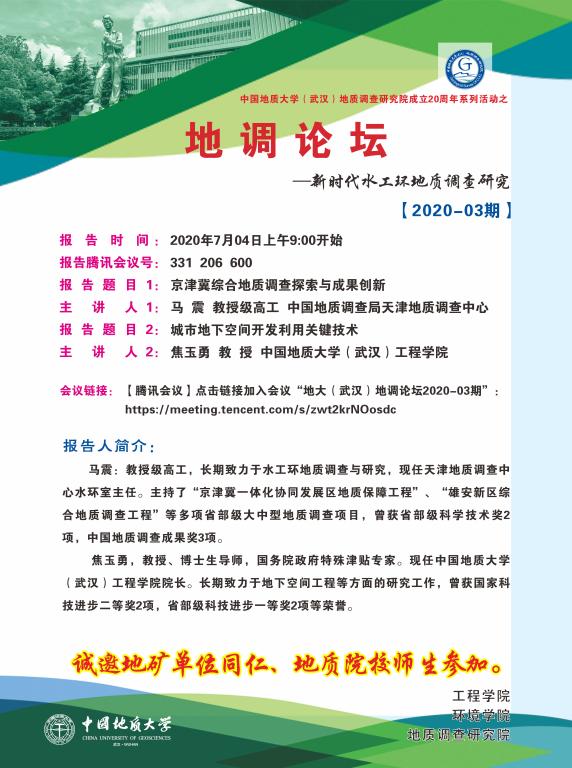 地调论坛-新时代水工环地质调查研究2020-03期