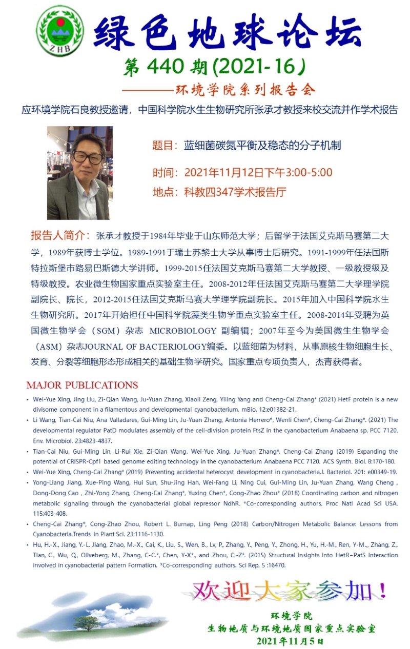 中国科学院水生生物研究所张承才教授学术报告