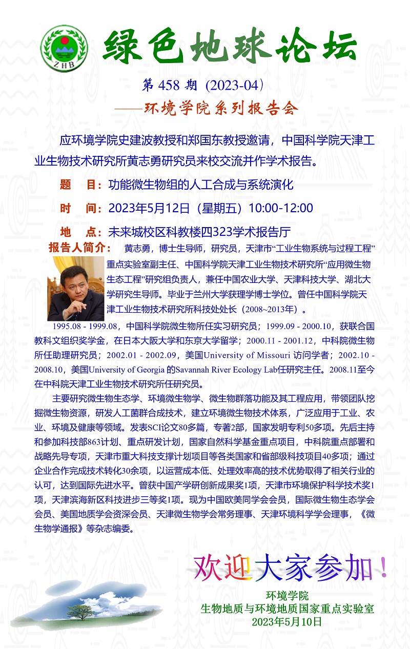 中国科学院天津工业生物技术研究所黄志勇研究员学术报告