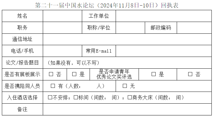 第二十一届中国水论坛会议期间将组成评委会,评出10篇优秀论文,由中国水利水电出版社颁发“中国水论坛2024年度十佳优秀青年论文奖”证书和奖金。