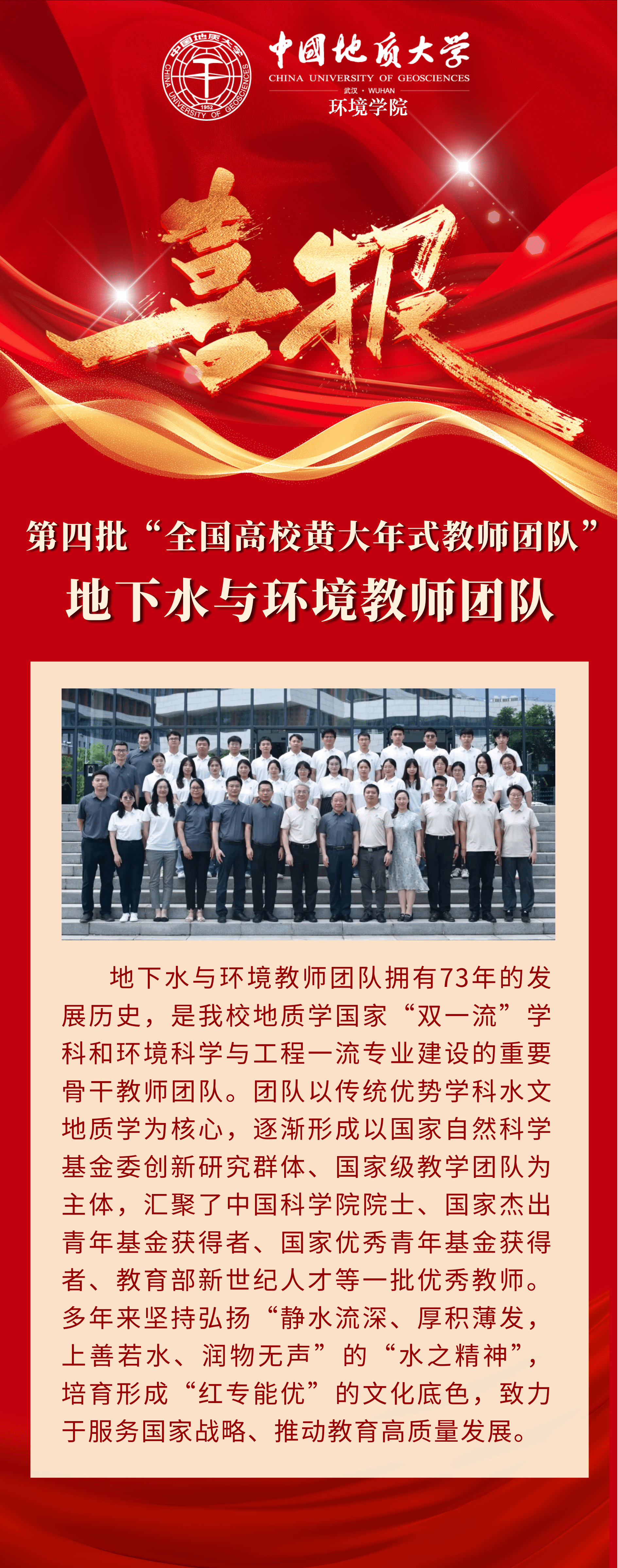 团队坚持“课程—教材—平台”一体推进,积极探索教育教学改革创新。持续优化教学资源建设,建成《地下水污染与防治》《水文地质学》《环境地质学》《地下水动力学》等4门国家级一流课程,主编全国首部地下水污染统编教材,获批国家级教学团队和教育部虚拟教研室。不断探索新工科专业建设,承担教育部新工科改革项目“长江中游环境地学产业学院”以“优秀”结题,形成系列可复制、可推广的育人模式。近五年,团队指导学生获中国国际“互联网+”大赛银奖等国家级奖项42项,培养出包括2名国家杰青和5名优青在内的一批高层次人才,成为行业生力军。