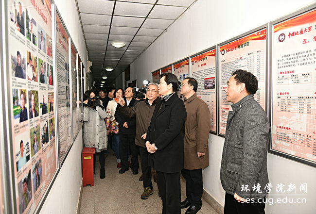 王艳玲参观肉视频 办学成果宣传橱窗和文化长廊。