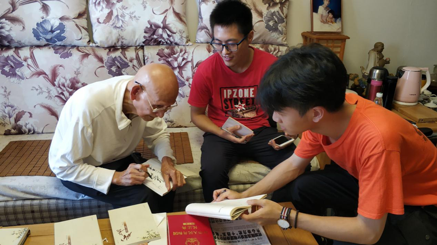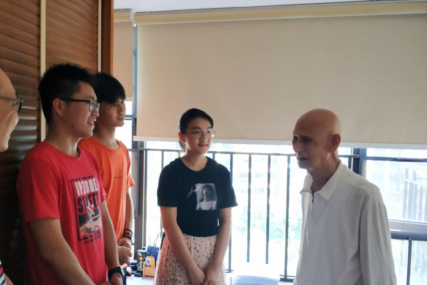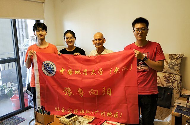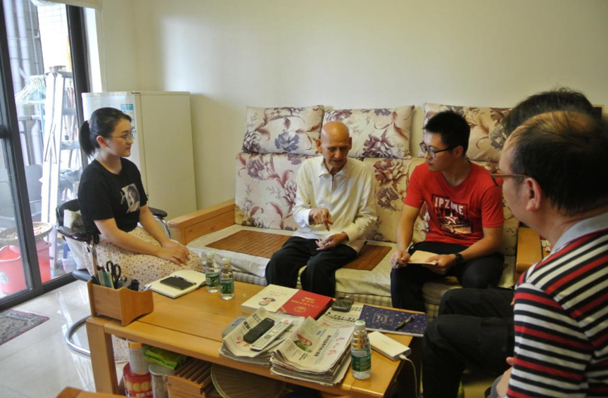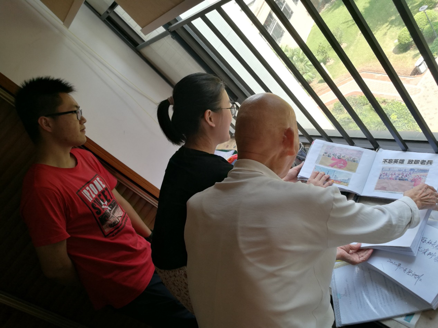 “豫粤向阳”社会实践团郭玥、刘宇杰、谭昕煜三名同学在广州市华林街工委赖明晖同志和兴贤社区党委钟书记的带领下,到老党员梁端仁家中拜访,继续探索“四史”学习实践。