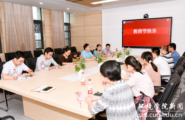李素矿代表学院向老师们致以教师节祝福。组织青年教师一道学习习近平总书记代表党中央,向全国广大教师和教育工作者致以节日的祝贺和诚挚的慰问的重要讲话精神。要求大家要一定要遵循总书记教诲,做“四有”好老师,做“四个引路人”,做学生的“大先生”。