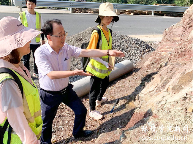 9月11日,马腾一行参加滚石坳实测路线实习。与带队教师交流实习路线设计和区域地质概况,向同学讲解地质现象。