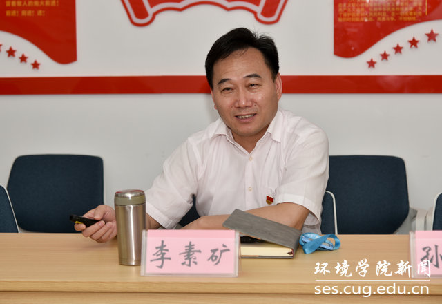 李素矿以《坚持红色基因铸魂、培育生态环保铁军》为题,从传承红色基因、夯实政治建设基础,创新特色思政体系、打造党建品牌,势能转动能、打造铁军成长摇篮三个方面对学院党建工作进行了系统全面介绍。他聚焦全国党建标杆院系建设、“三全育人”综合改革、湖北省党建十大案例等,重点对构建红专能优高质量思政体系、水土气生环跨学科一体化育人、张国旗班行动计划、1+6资政育人载体、美丽中国4+N课程思政等工作开展情况进行了详细介绍。