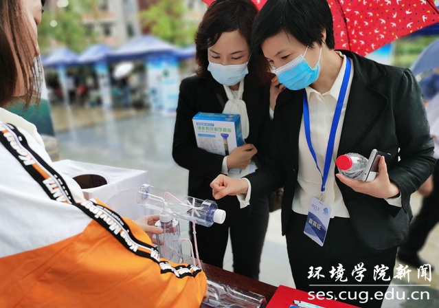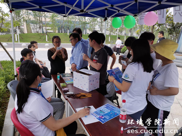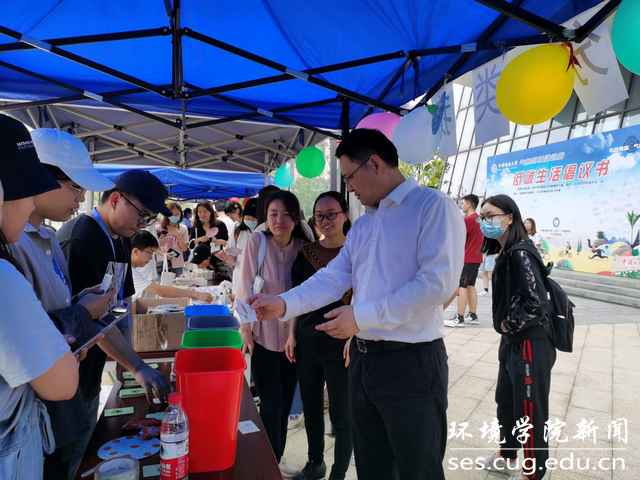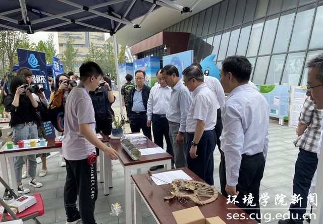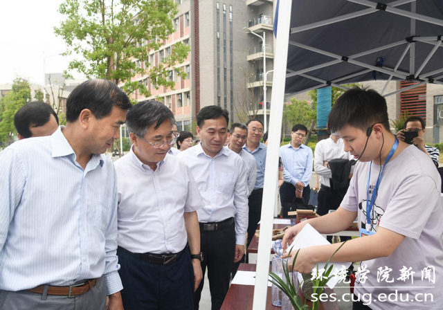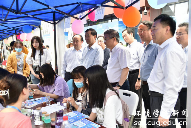 5月21日下午,中国气象局副局长宇如聪一行到未来城校区参观调研。在大学生活动中心前与环境科技文化节--大气科普活动现场学生互动。