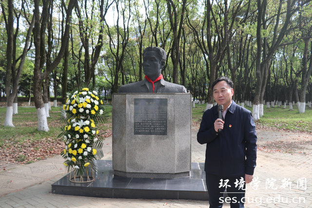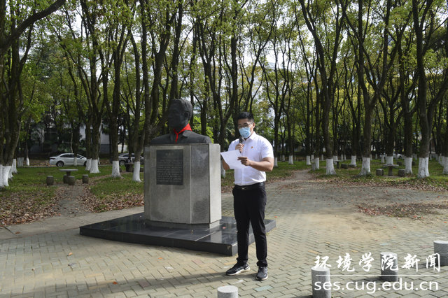 乃至全校全国的精神品牌,是学院推进党建“双创”和“三全育人”工作的重要支撑。环境学子每年清明来此缅怀英雄校友,是同学们学习生活中的重要内容,也是向革命、建设、开放各个时期的英雄先烈致敬的重要方式。他强调,作为新时代青年学子,要通过缅怀英雄事迹和精神,学习英雄好榜样,强化不忘初心、牢记使命的意志,激励自己永葆赤子情怀、争优时代先锋。他要求,全院各党团组织、各班级、各位同学都要以传承红色基因、培育时代新人为己任,践行红专能优理念,创新开展党团活动,以德居之、以能居之,积极投身美丽中国建设,把论文写在祖国大地上,做政治强、本领高、作风硬、敢担当,特别能吃苦、特别能战斗、特别能奉献的新时代生态环保铁军。