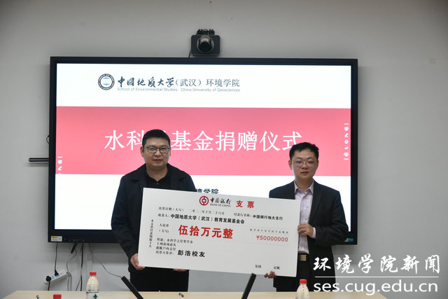 “水科学基金”由竹溪创意皂素公司、校长王焰新院士及其弟子等共同出资设立,武汉中地水石环保科技有限公司将在三年周期内捐赠50万元,用于水科学之星奖学金设置以及学院发展建设。